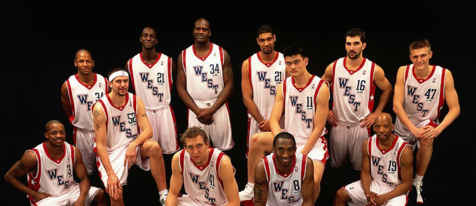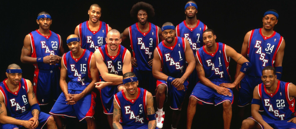 詹姆斯的新秀赛季效力于克利夫兰骑士队,彼时的东部全明星首发阵容由艾弗森、麦迪、卡特、本-华莱士与杰梅因-奥尼尔构成。西部全明星首发阵容为弗朗西斯、科比、加内特、蒂邓肯以及姚明,这份名单堪称星光熠熠。